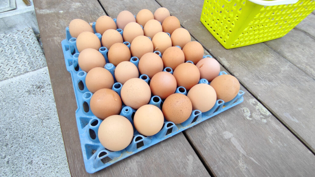 鈴木農場で卵を買う際、B級品の卵を買う場合はお買い物バッグや箱、ケースを用意しましょう。鈴木農場のB級品卵は卵ケースに入れられたまま売られていて、外の台にて自分で持ってきた入れ物に詰め替えます。スーパー袋のようなものでも良いですが、ダンボール箱やバスケットのような入れ物の方が卵が割れにくく、安心でしょう。鈴木農場ではB級品以外にもケース売りや化粧箱入りのシンデレ卵も売られています。それらはそのまま持ち帰ることが出来ますよ。