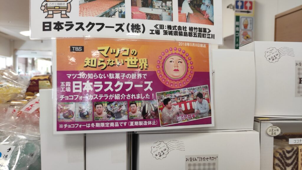 道の駅ごかにある農産物直売所わだい万菜と茨城物産品販売所では五霞名産品をはじめ、茨城県内の特産品を買うことが出来ます。テレビでも取り上げられた日本ラスクフーズは五霞に工場があり、チョコフォーカステラはお土産に大人気。また、五霞町特産の常陸秋そば粉を使用した手打ちそばは道の駅ごか内で作られています。農産物直売所わだい万菜では五霞産そば粉を買うことも出来ますよ。その他、古河市の関養鶏場の関匠卵ひびきは大人気。牡丹餅やいなりずしなどのお惣菜も人気がありますね。