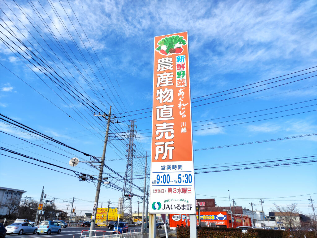 あぐれっしゅ川越は川越駅から車で約10分程度。川越駅、本川越駅よりバスでの利用も可能。あぐれっしゅ川越の駐車場は一部を除き川越市共同駐車場となっています。マイカーでの川越観光の拠点となっており、あぐれっしゅ川越の買い物客も川越への観光客のどちらも無料で利用することが出来ます。あぐれっしゅ川越はJAいるま野が運営する農産物直売所です。